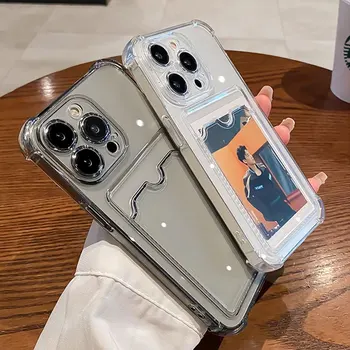 Transparent Card Slot Bag Holder Case For iPhone 15 14 13 12 11 Pro Max Mini X XS XR 7 8 Plus Clear Wallet Shockproof Soft Cover